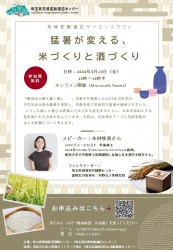 | タイトル: | 気候変動適応サイエンスカフェ「猛暑が変える、米づくりと酒づくり」 |