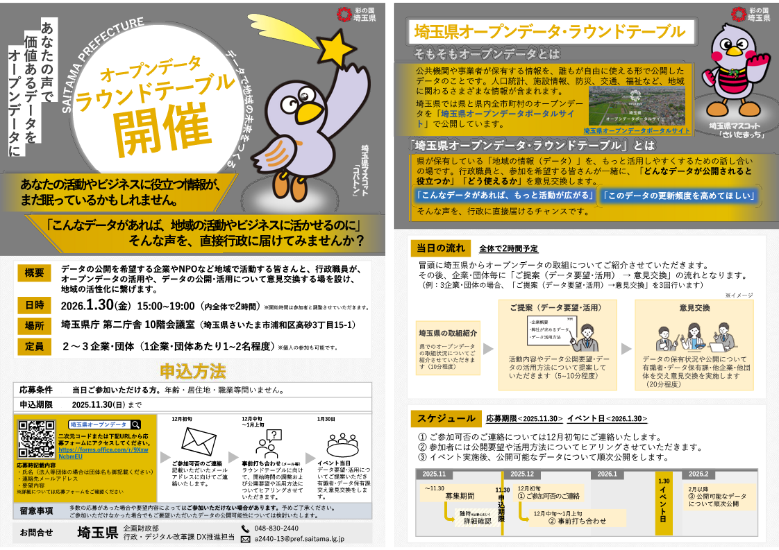 埼玉県では、県と県内市町村の保有するデータを、営利非営利問わず誰もが無償で利用できるオープンデータとして公開しています。